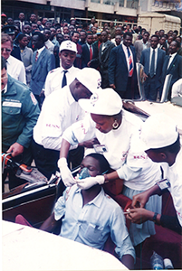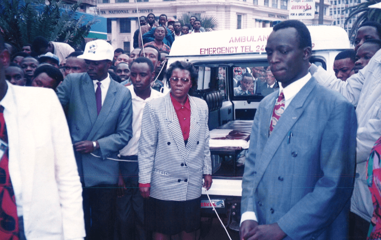 Head Nurses Clarice Mirera and Jennifer Matiku demonstrate Accident Victim Handling during the use of Holmatro.