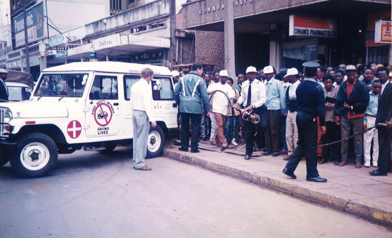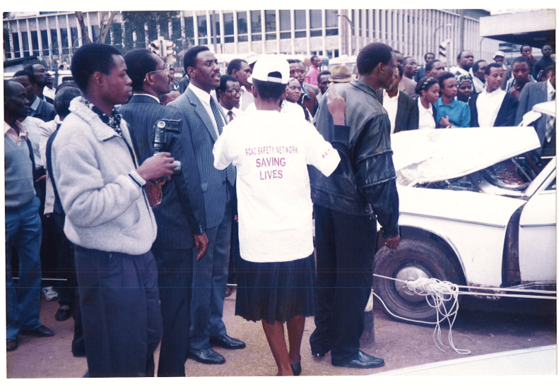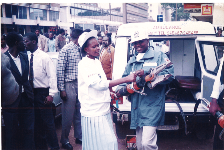 Demos and Education on Equipment use is what makes a difference. Below members of Staff from Road Safety Network observing a training session with Director of Administration Mrs.Anne Ogutu looking on.